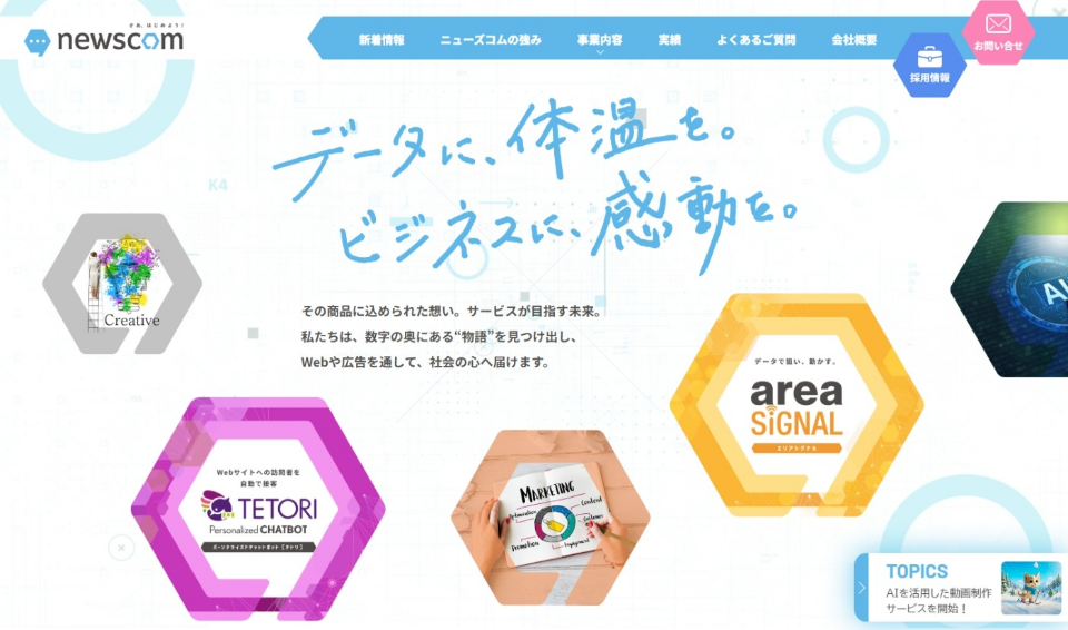 強みは、戦略から実行まで丸ごと任せられる一貫体制。Web制作や広告、映像、イベントなどは成果を出すための大切な手段です。さらに調査分析やDX支援を通じ、社内の仕組みづくりもお手伝いします。「作って終わり」ではなく、ずっと寄り添い、共に挑戦し続ける存在でありたいと考えています。